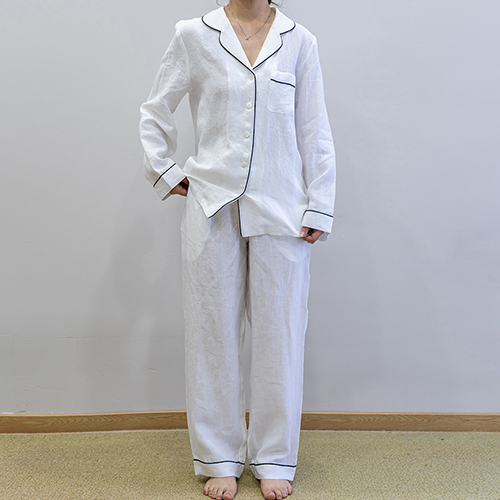 white women linen shirt pajamas set