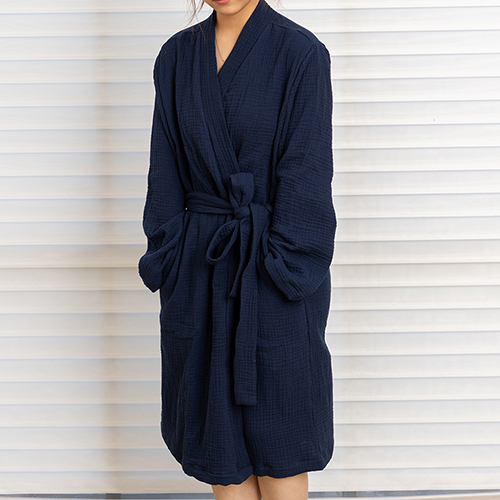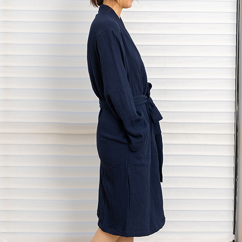 Dark blue linen robe