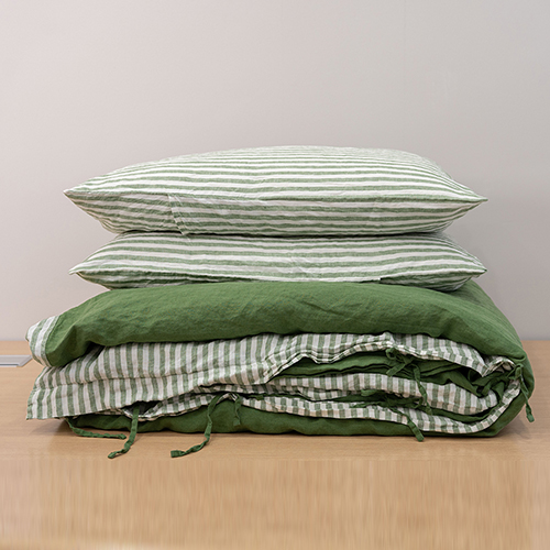sage stripe linen duvet cover set